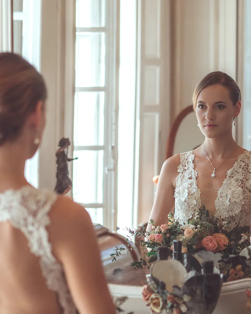 Un bijou délicat pour une mariée qui souhaite allier sobriété, lumière et élégance naturelle.