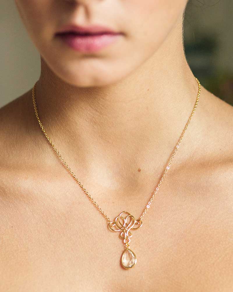 – Collier orné d’une pierre en forme de goutte et d'une volute.